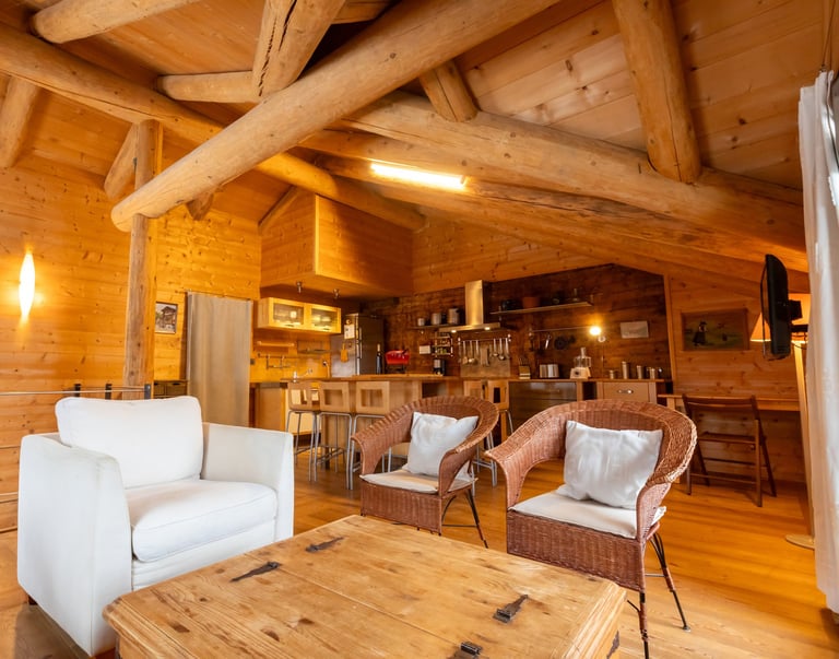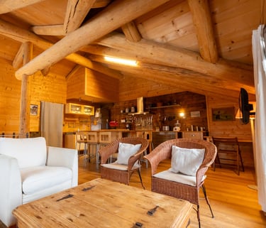 Superb all-wood chalet. The living room is spacious and ideal for meeting up with family or friends.