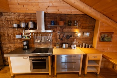 The kitchen at Chalet Dent d'Oche is a dream for home chefs, offering everything you need to prepare delicious meals. From the coffee machine to the microwave, oven, and stovetop, it’s fully equipped with high-quality appliances that cater to your culinary needs. The toaster, refrigerator, and kitchenware make cooking easy, while the dining table provides a perfect spot for family meals. Take advantage of the fondue and raclette devices for a traditional Swiss experience.