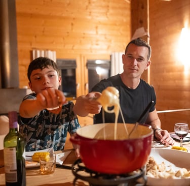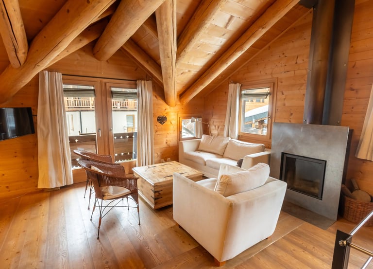 The living room at Chalet Dent d'Oche is the perfect place to relax after a day of adventure. With real wood accents throughout, this space exudes warmth and charm. The large sofas invite you to unwind, whether you're reading a book or watching your favorite movie on the flat-screen TV. Enjoy cozy evenings in a welcoming and comfortable atmosphere for everyone. Whether you’re gathering with family or enjoying some downtime, the living room is the heart of the chalet.